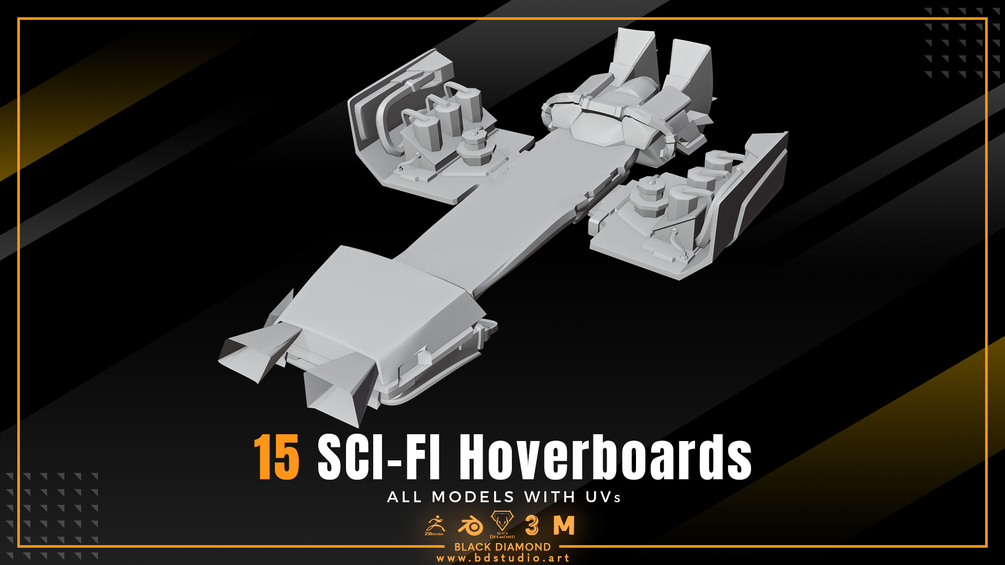 In this pack, there are 15 models of sci-fi skateboards and hoverboards, which were made with standard topology and thay are very optimal in term of size and polygons.
